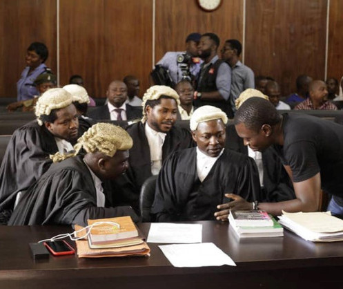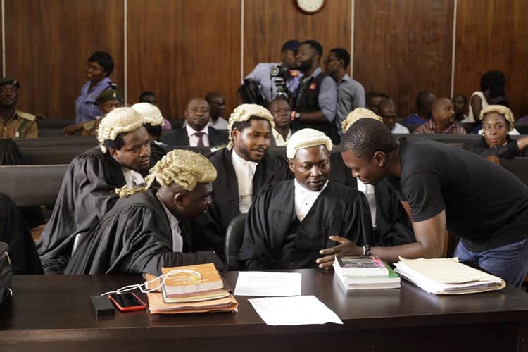 • CrossRiverWatch journalist Agba Jalingo (right) is seen in a federal high court in Calabar, Nigeria. The court recently granted anonymity to witnesses expected to testify against Jalingo. (Oto-Obongo Clement/CrossRiverWatch)