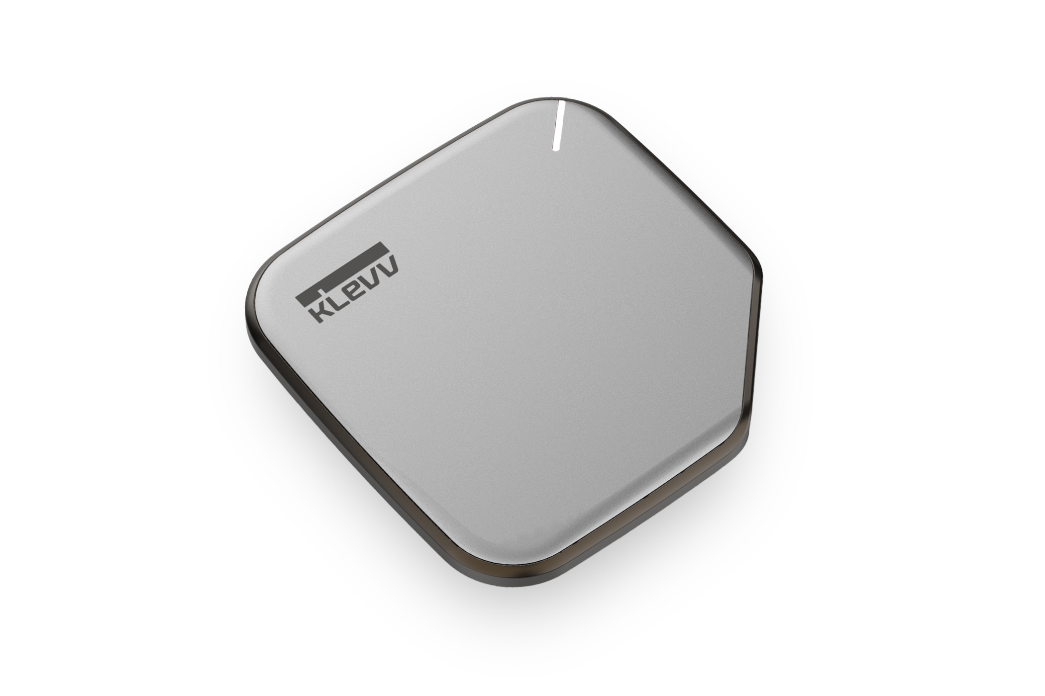 This compact, square and soft-edged portable SSD, the KLEVV S1, embodies an eye-catching yet minimalistic design