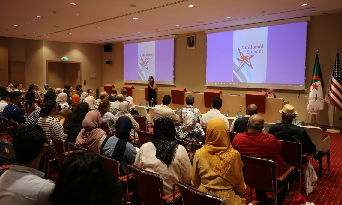 La conférence #DzAlumni était une conférence d’une journée qui a rassemblé des alumni  de l’ambassade Américaine venus d’Algérie pour une journée complète de discours, d’ateliers, de présentations et de formations en leadership. Il a permis aux anciens élèves de nouer des contacts, de partager des expériences réussies et les lessons tirés des projets locaux et de lancer de nouvelles idées pour des initiatives de service. La conférence était une initiative développée par le Comité de pilotage des alumni et a eu lieu le 3 août à Alger.