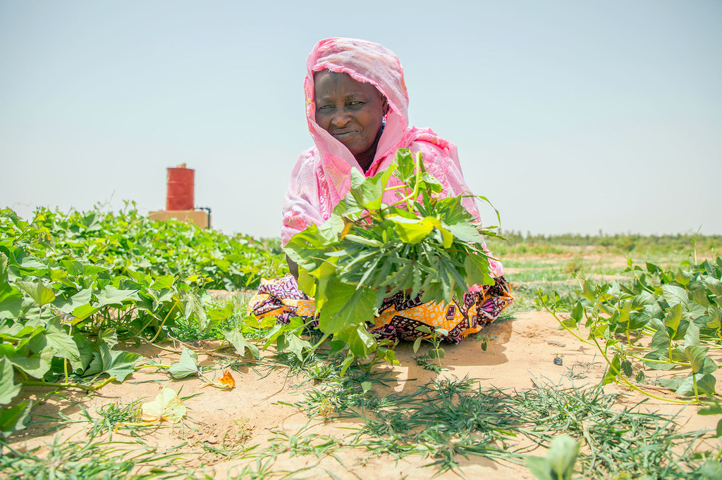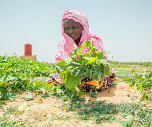 • Une femme au Mali prend soin d'un jardin communautaire dans le cadre d'un projet du Programme alimentaire mondial (PAM) (Photo PAM/Simon Pierre Diouf)