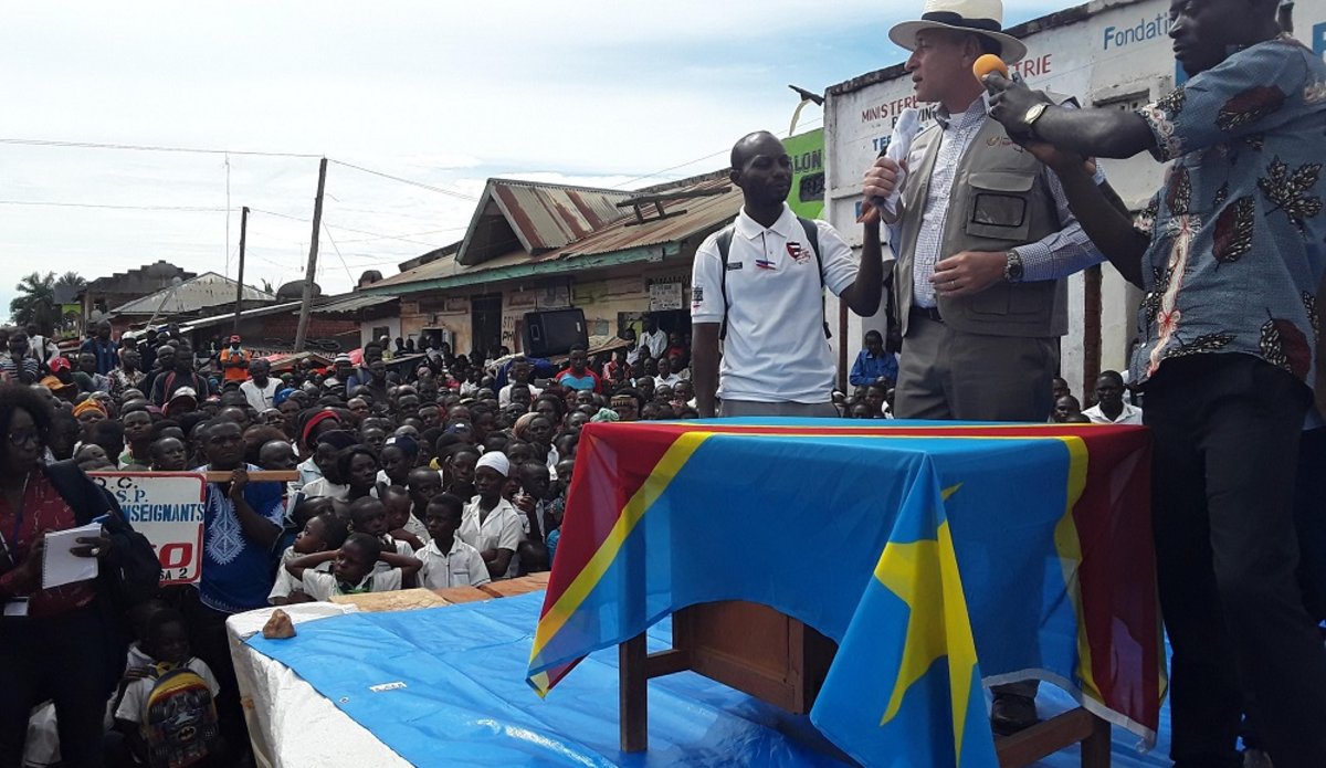 Deux vols spéciaux de la MONUSCO affrétés par la Coordination des Nations Unies pour la Réponse d’urgence contre Ebola (EERC), deux Gouverneurs de Province (Ituri et Nord-Kivu) et deux Chefs de Bureau de la MONUSCO (Ituri et Beni) pour une même destination : Biakato à 250 kilomètres de Bunia en Ituri et pour un même objectif : parler d’Ebola, cette maladie dont certains ici continuent à nier l’existence et l’assimilent à une « invention ». D’où cette mobilisation des deux autorités provinciales, avec l’appui de la MONUSCO, pour une sensibilisation des populations locales.