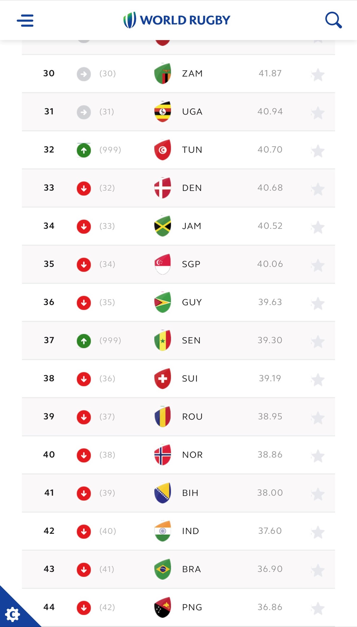 • La Tunisie se classe 32ème du classement mondial de World Rugby des équipes féminines de Rugby à XV (1)