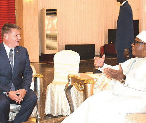 L’Ambassadeur Hankins est arrivé à Bamako le 13 mars avec son épouse, Mira Hankins, et a été reçu par le président Keïta au palais présidentiel de Kolouba à Bamako.