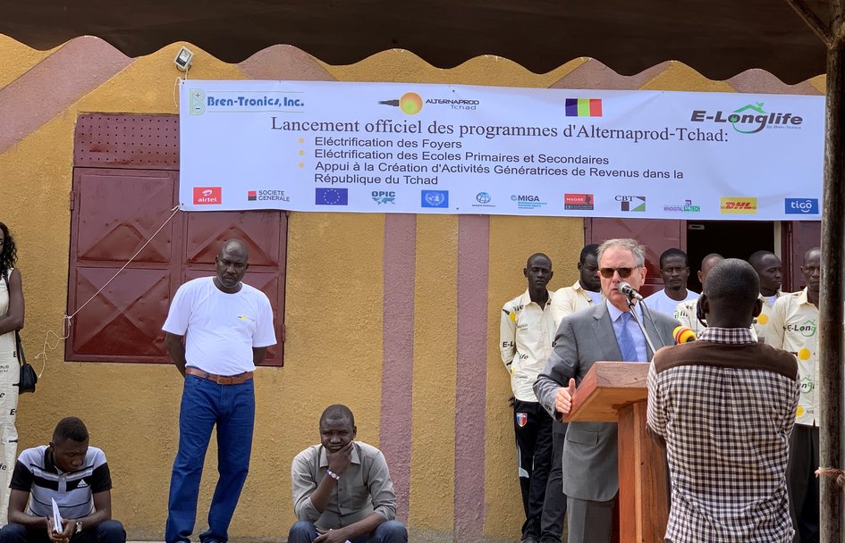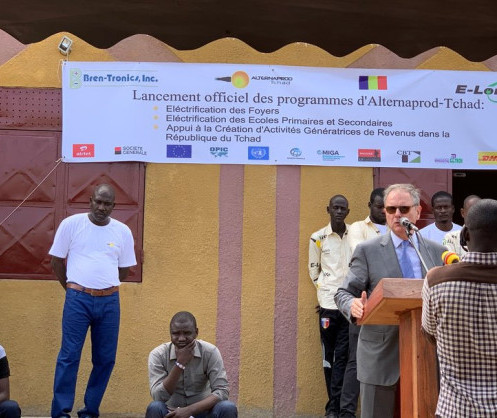 Le 24 octobre 2019, l’Ambassadeur de France au Tchad, M. Bertrand Cochery, a effectué sa première visite de terrain au village de Mabrio Hadjaraï (Chari-Baguirmi), à l’occasion de la cérémonie de lancement des projets pilotes d’électrification solaire développés par la société Alternaprod, filiale tchadienne des groupes français E-longlife et américain Bren-tronics, spécialistes des solutions de stockage de l’énergie.