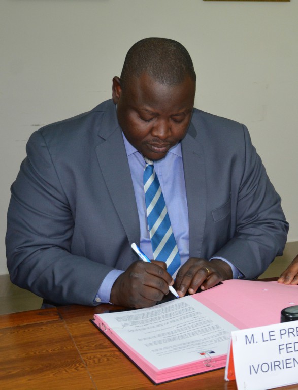 C’est en présence du ministre des Sports, Paulin Claude Danho et l’Ambassadeur de la France en Côte d’Ivoire, Gilles Huberson que cette convention a été signée. Le Président Elvis Tano a apposé sa signature au bas de cette convention pour le compte de la Fédération Ivoirienne de Rugby (FIR.CI).