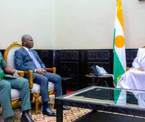 Le Président de la République, Chef de l’Etat, SEM Mohamed Bazoum, a reçu lundi 11 juillet 2022 en fin d’après-midi, le Ministre béninois de la Défense Nationale, M. Nouatin Fortunet Alain, en visite de travail au Niger, axée sur la situation sécuritaire au Niger et au Bénin et le renforcement de la coopération militaire entre les deux pays.