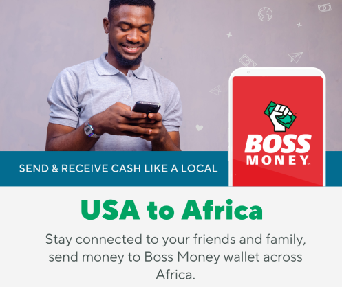 The Boss Money wallet will enable customers across Africa to receive money in their local currency directly from customers in the U.S using the BOSS Money app. Transferred funds can be used to purchase airtime, pay bills locally, and send to other BOSS Money users across Africa for free.  Funds can also be cashed out to the recipient’s bank account or their mobile operator’s wallet.
