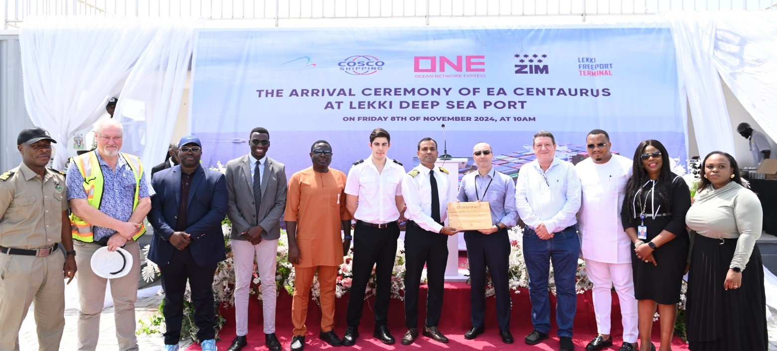 The launch of the services was signaled by the arrival of the E A Centaurus at Lekki Deep Sea Port on Friday, November 8, 2024. The E A Centaurus, with an overall length of 277m and a container handling capacity of 7,000 TEU, is also the largest COSCO vessel to call Nigeria. It docked at the port at about 10:30 a.m.