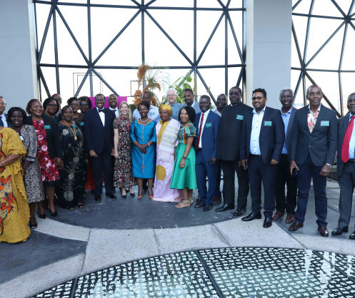 • Dr. Akinwumi A. Adesina, President of the African Development Bank Group, city leaders participating in the inaugural cohort of the AMALI City Leadership Programme, and AMALI board members, coaches and advisors. Image source: African Mayoral Leadership Initiative (AMALI)