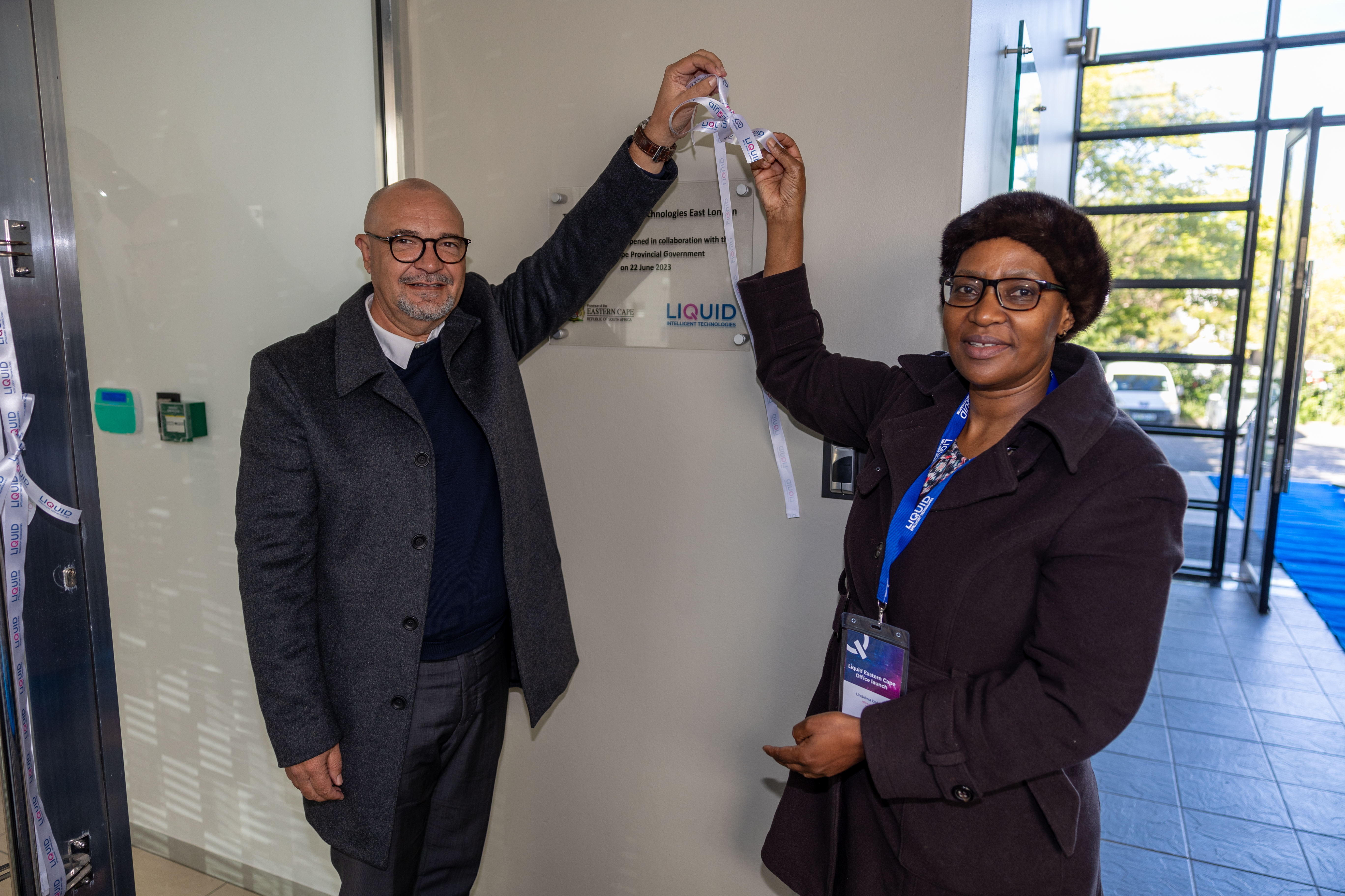 • Dr Craig van Rooyen, Chief Commercial Officer of Liquid South Africa and the DDG of the Eastern Cape Provincial Government, Lindelwa Dakada at the opening of Liquid’s office in East London in the Eastern Cape