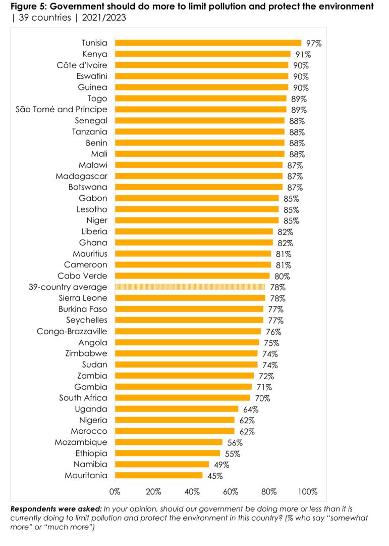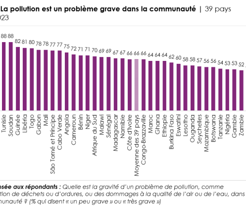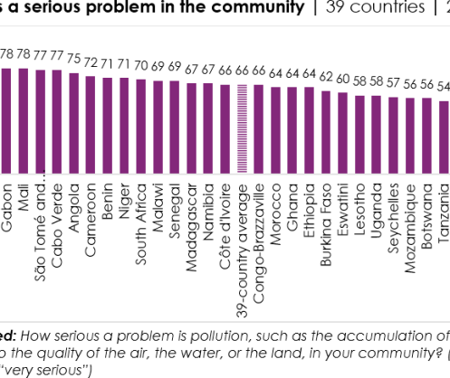 • On average across 39 countries, two-thirds (66%) of Africans say environmental pollution is a serious problem in their communities (Figure 1).