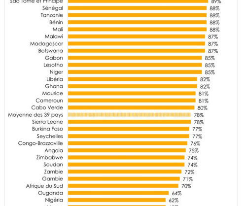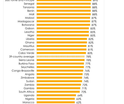 • This sentiment is nearly universal in Tunisia (97%) and reaches nine in 10 citizens or more in Kenya (91%), Cote d’Ivoire (90%), Eswatini (90%), and Guinea (90%).