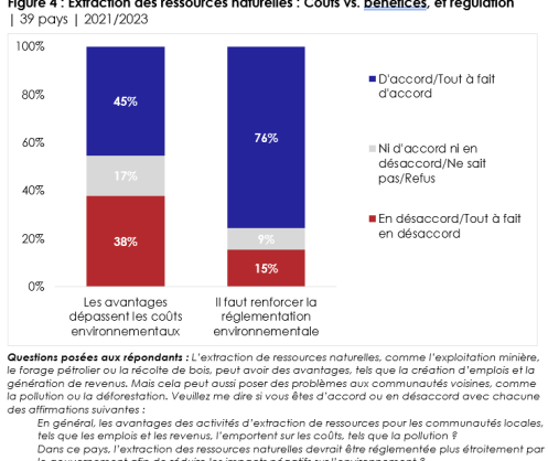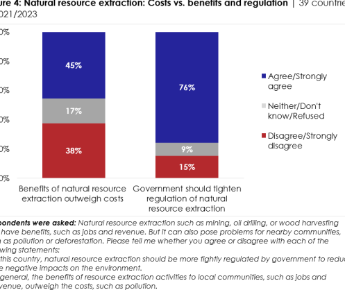 • Three-quarters (76%) want their governments to regulate natural resource extraction more tightly to reduce negative environmental consequences.