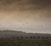 • Shilabo, Ogaden, dans la région Somalie en Ethiopie. Un troupeau de chameaux passe à travers un essaim de criquets
