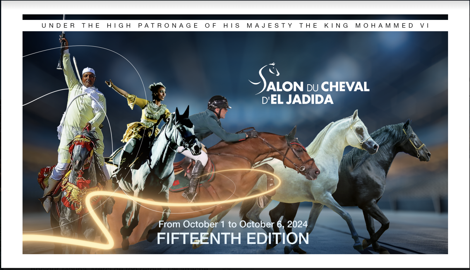 15th edition of Salon du Cheval d’El Jadida Dates : From October 1st to October 6th, 2024 Theme : "Horse farming in Morocco: innovation and challenge"