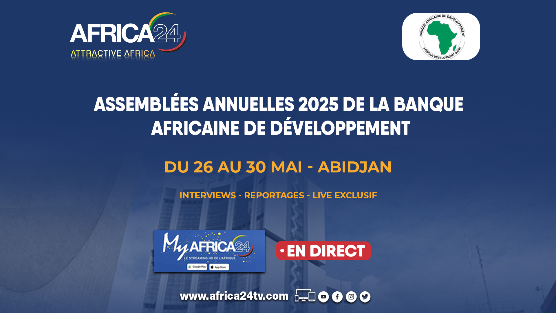 African Development Bank (AfDB): AFRICA24 Group Brings You Live Coverage of the 2025 Annual Meetings (1) (FR) (Source: AFRICA24 Group | 9 months ago)