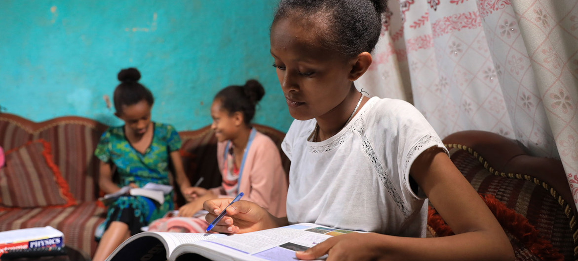Menina na Etiópia estudando em casa durante pandemia de Covid-19 (Unicef/NahomTesfaye) (Fonte: UN News | 5 years ago)
