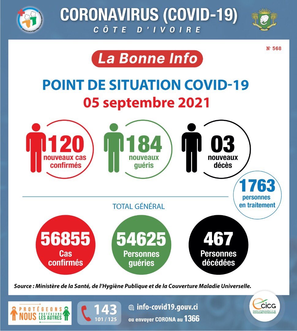 Coronavirus - Côte d'Ivoire : Point de la situation COVID-19 (05 septembre 2021)