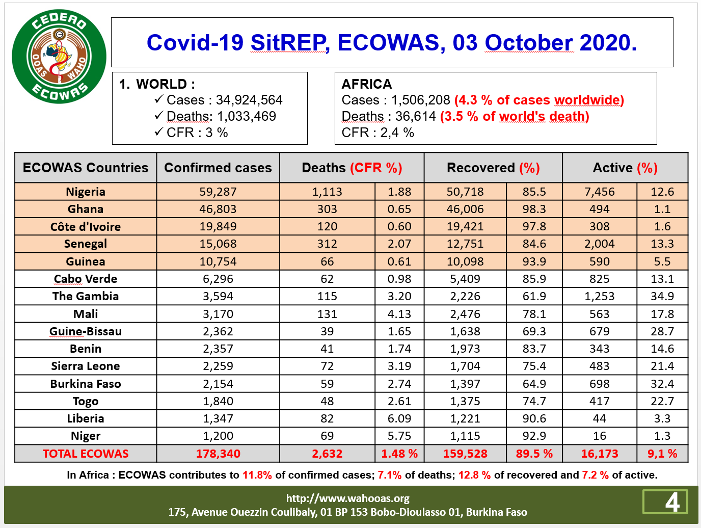 Coronavirus - ECOWAS: Daily update for 3 October 2020