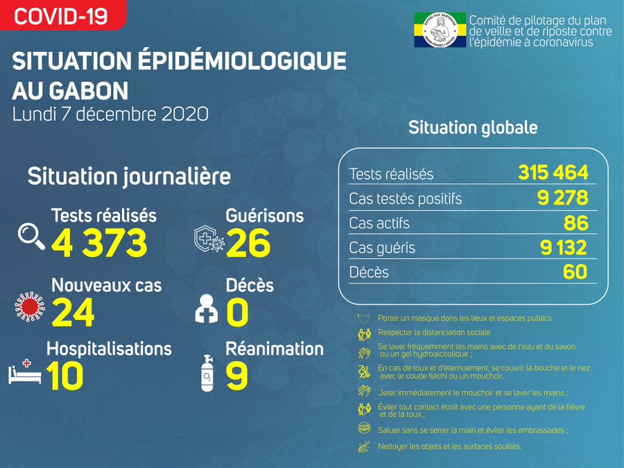 Coronavirus - Gabon : Situation Épidémiologique au Gabon (7 décembre 2020)