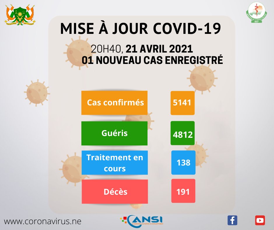 Coronavirus - Niger : mise à jour COVID-19 (21 avril 2021) (Source: Ministère de la Santé Publique du Niger | 4 years ago)