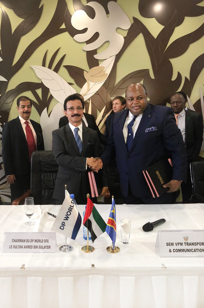 Sultan Ahmed Bin Sulayem, PDG de DP World et José Makila Sumanda, Vice-Premier Ministre et Ministre des Transports et des Communications de la RDC, lors de la signature de la concession du Port de Banana en République Démocratique du Congo (Source: DP World | 7 years ago)