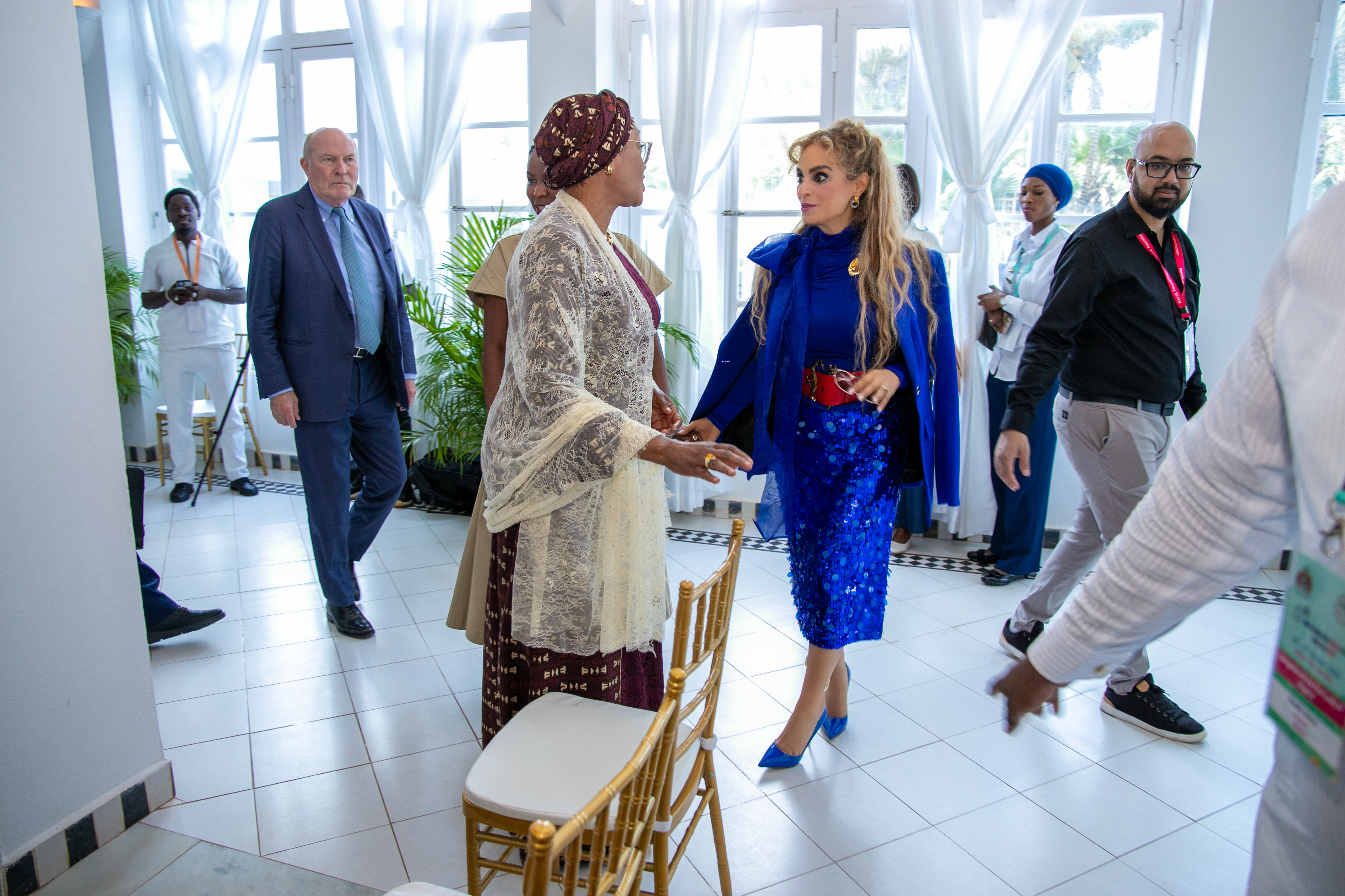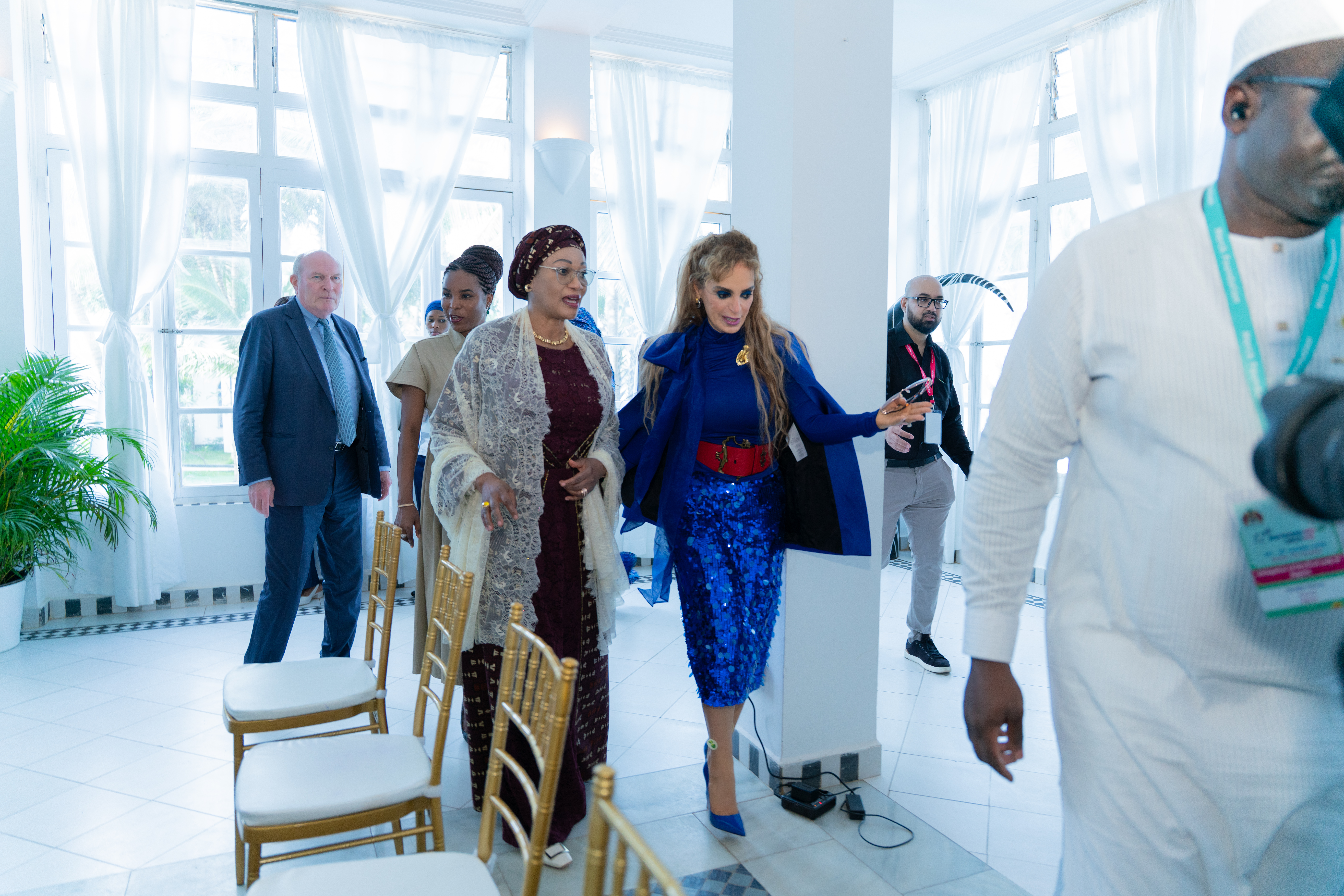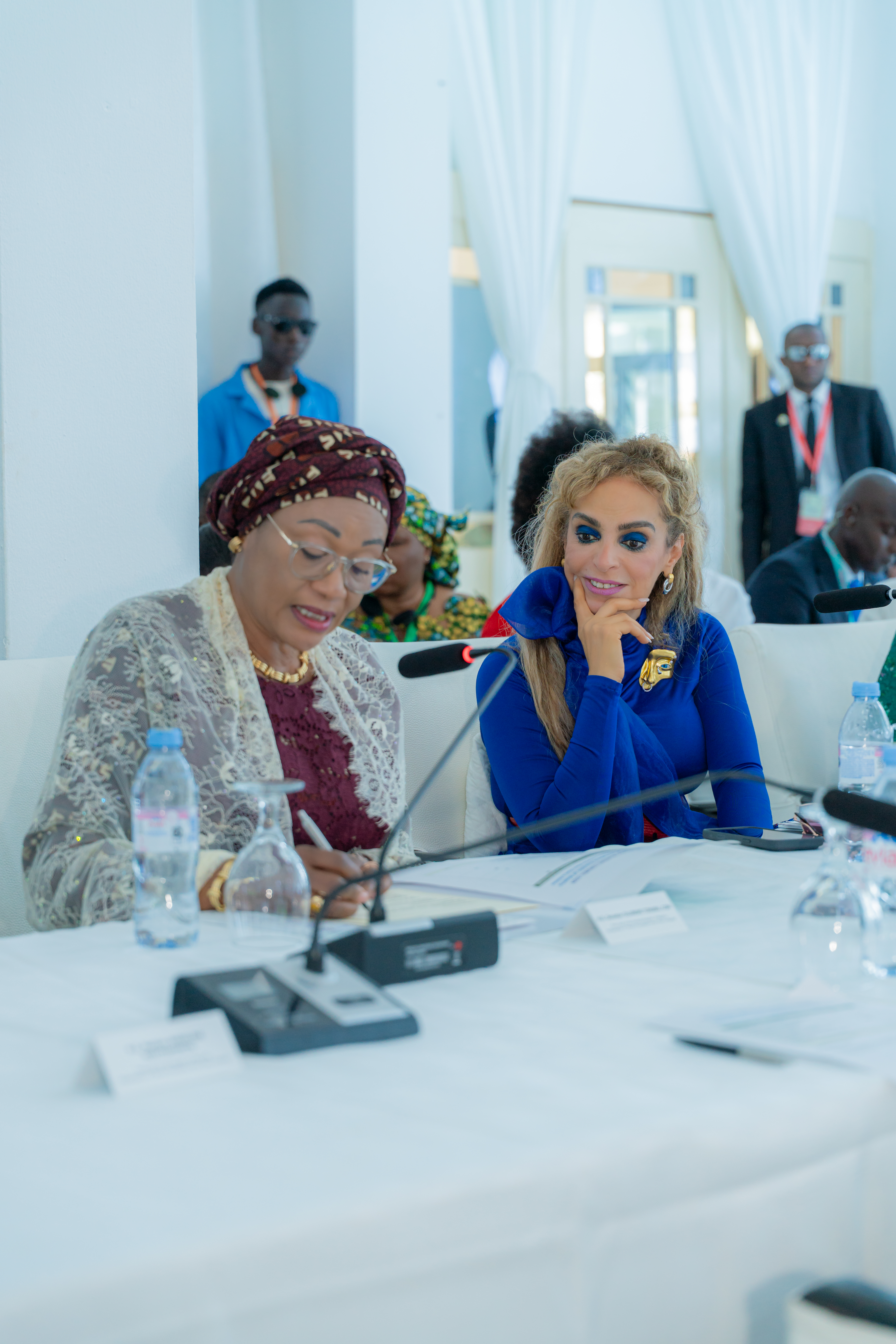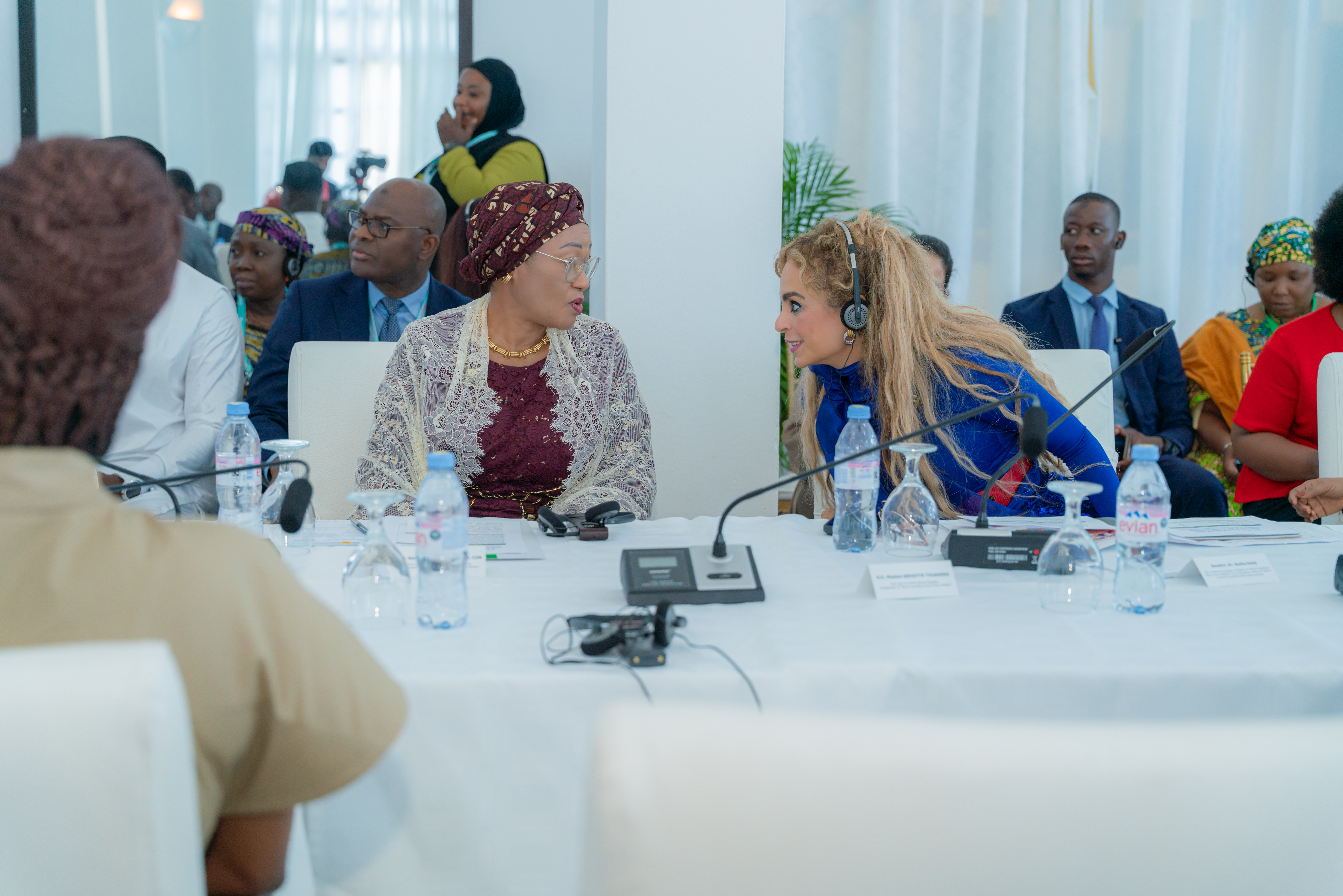 Dr. Rasha Kelej s'entretient avec la Première Dame du Nigéria au sujet de leurs programmes conjoints visant à renforcer les capacités des secteurs de la santé et des médias, et à soutenir l'éducation des filles, lors de la 12ème édition de la conférence Merck Foundation Africa Asia Luminary 2025