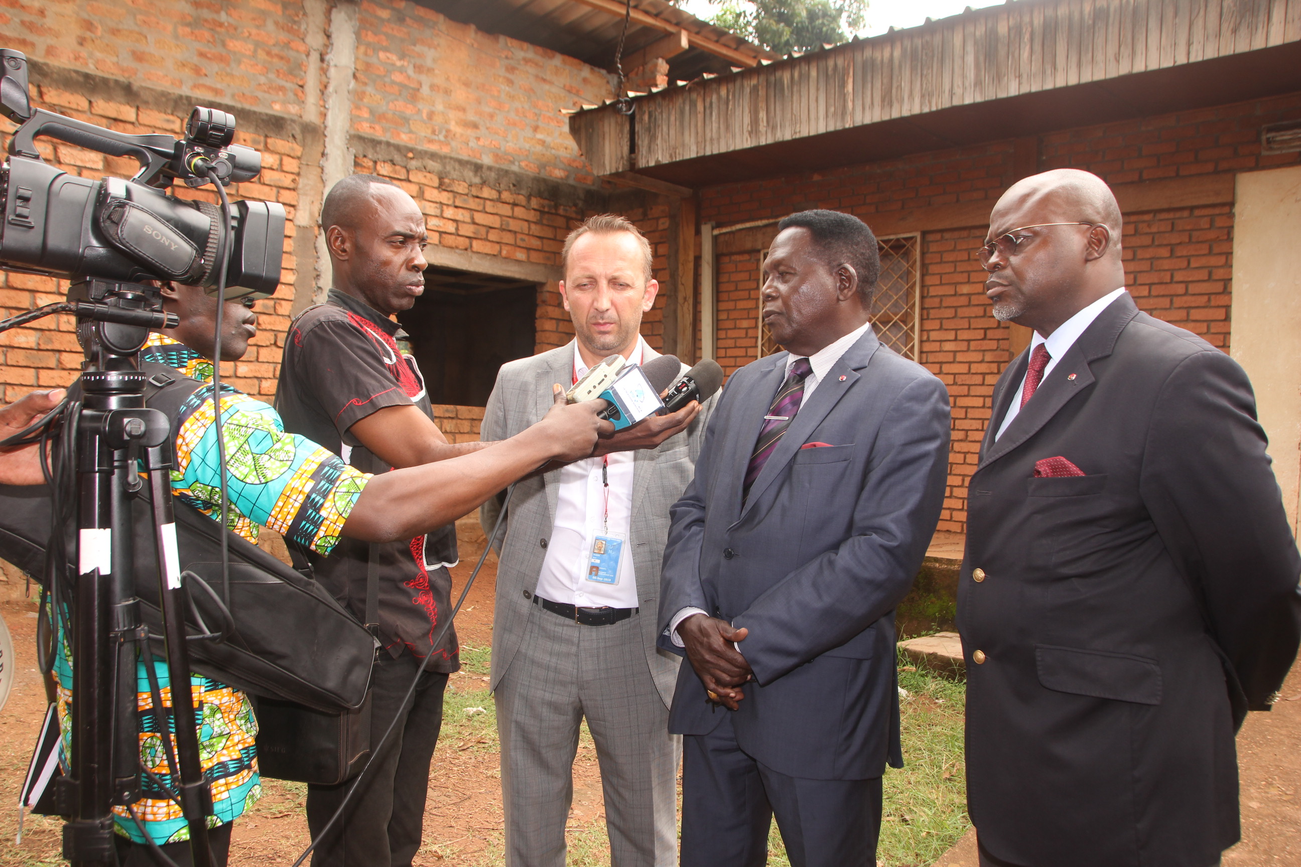 De droite à gauche, Rector of University of Bangui (Le Recteur de Universite de Bangui) JEAN LAURENT SYSSA MAGALE, Minister of Higher Education (Le Ministre de l’Enscignment Superieur) Mr. JEAN JAEQUES SANSZE, Translator on Behalf of Ecolog International, Central African Republic, General Manager, Mr. Besfort Ilijazi (Source: Ecolog International | 7 years ago)