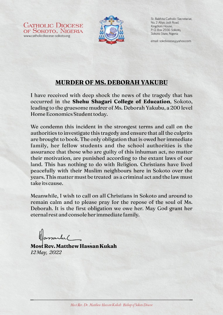Statement by the Catholic Bishop of Sokoto Diocese, Most Reverend Matthew Hassan Kukah (Source: Catholic Diocese of Sokoto | 3 years ago)