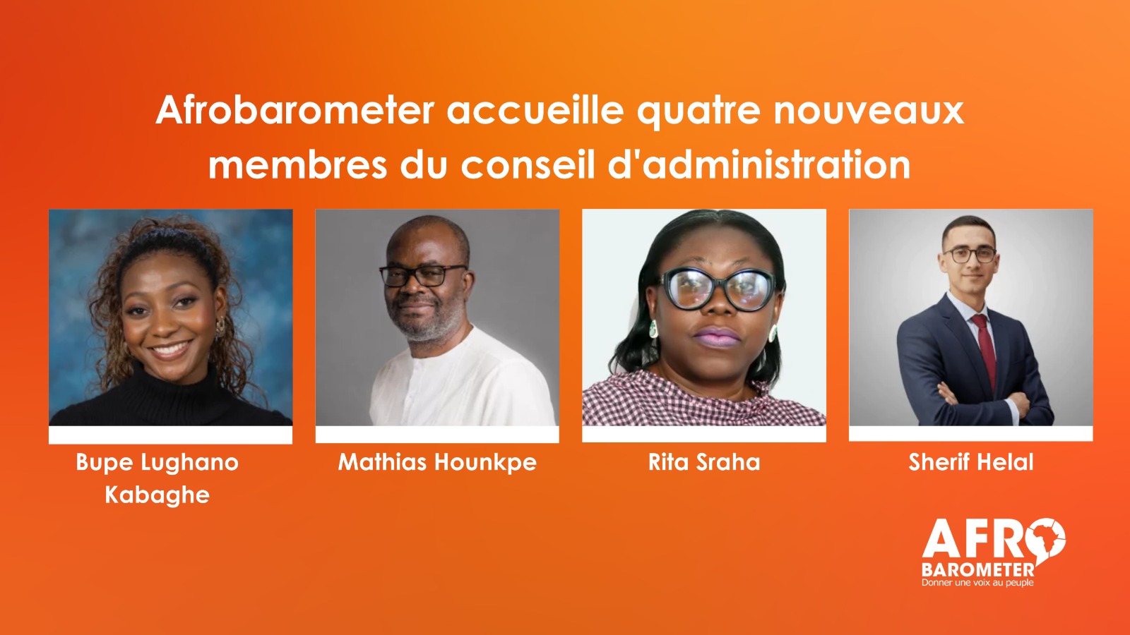 Quatre nouveaux membres au conseil d'administration renforcent le champ d'action d'Afrobarometer en matière d'autonomisation des jeunes, de technologie, de gouvernance et de finance