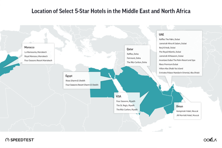 Les hôtels de luxe de Riyad et de Dubaï disposent des réseaux Wi-Fi les plus rapides de la région Moyen Orient et Afrique du Nord, selon un rapport d'Ookla® (EN) (Source: Ookla® | 10 months ago)