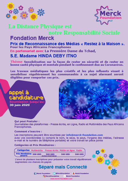 Appel à candidatures pour les prix de reconnaissance médiatique «Restez à la maison» - Tchad (Source: Merck Foundation | 5 years ago)