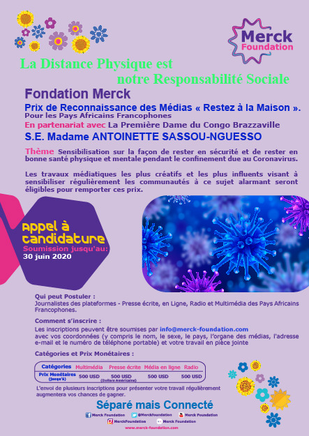 Appel à candidatures pour les prix de reconnaissance médiatique «Restez à la maison» - Congo Brazzaville (Source: Merck Foundation | 5 years ago)