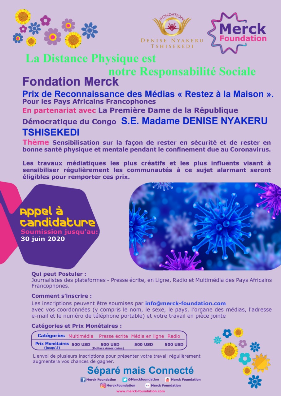Appel à candidatures pour les prix de reconnaissance médiatique «Restez à la maison» - République Démocratique du Congo (Source: Merck Foundation | 5 years ago)