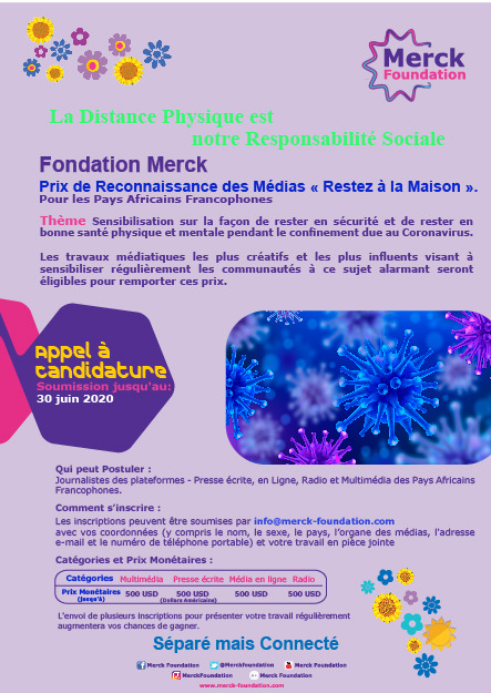 Appel à candidatures pour les prix de reconnaissance médiatique «Restez à la maison» - Français général (Source: Merck Foundation | 5 years ago)