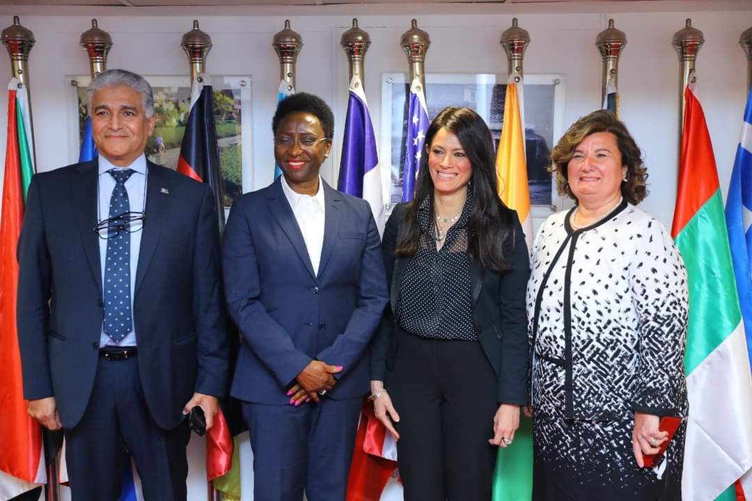 Standing from L-R: Mohamed Youssef, Executive Director, Egyptian Businessmen’s Association, Irene Ochem, AWIEF Founder & CEO, H. E. Dr. Rania Al-Mashat, Egypt’s Minister for International Cooperation and Nevine Abdelkhalek, Board Member Egyptian Businessmen’s Association (Source: Africa Women Innovation and Entrepreneurship Forum (AWIEF) | 3 years ago)