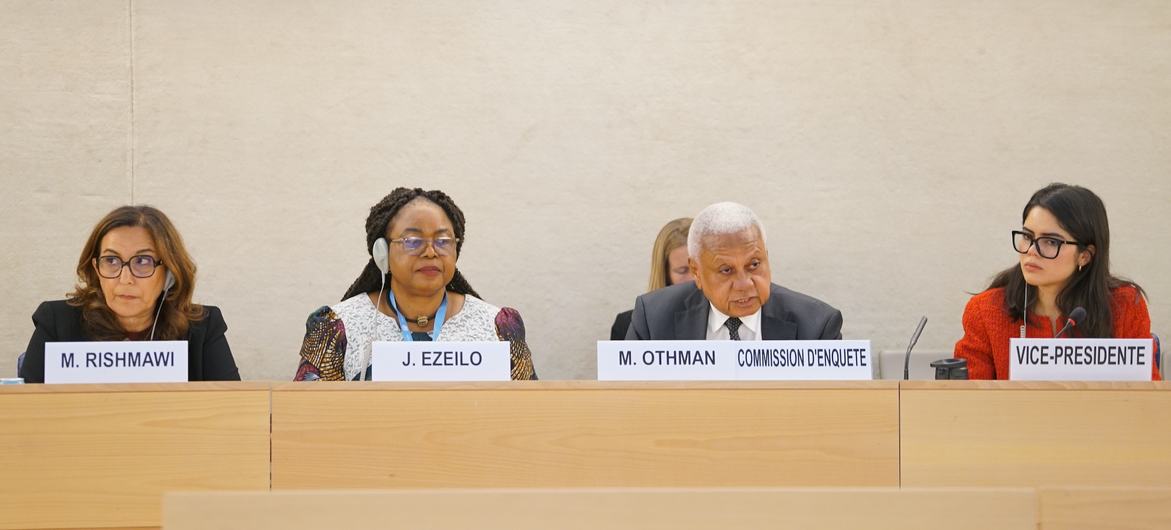 UN Geneva Members of the FFM, alongside Vice President of the Human Rights Council at the body's 56th session in Geneva (Source: UN News | 1 year ago)