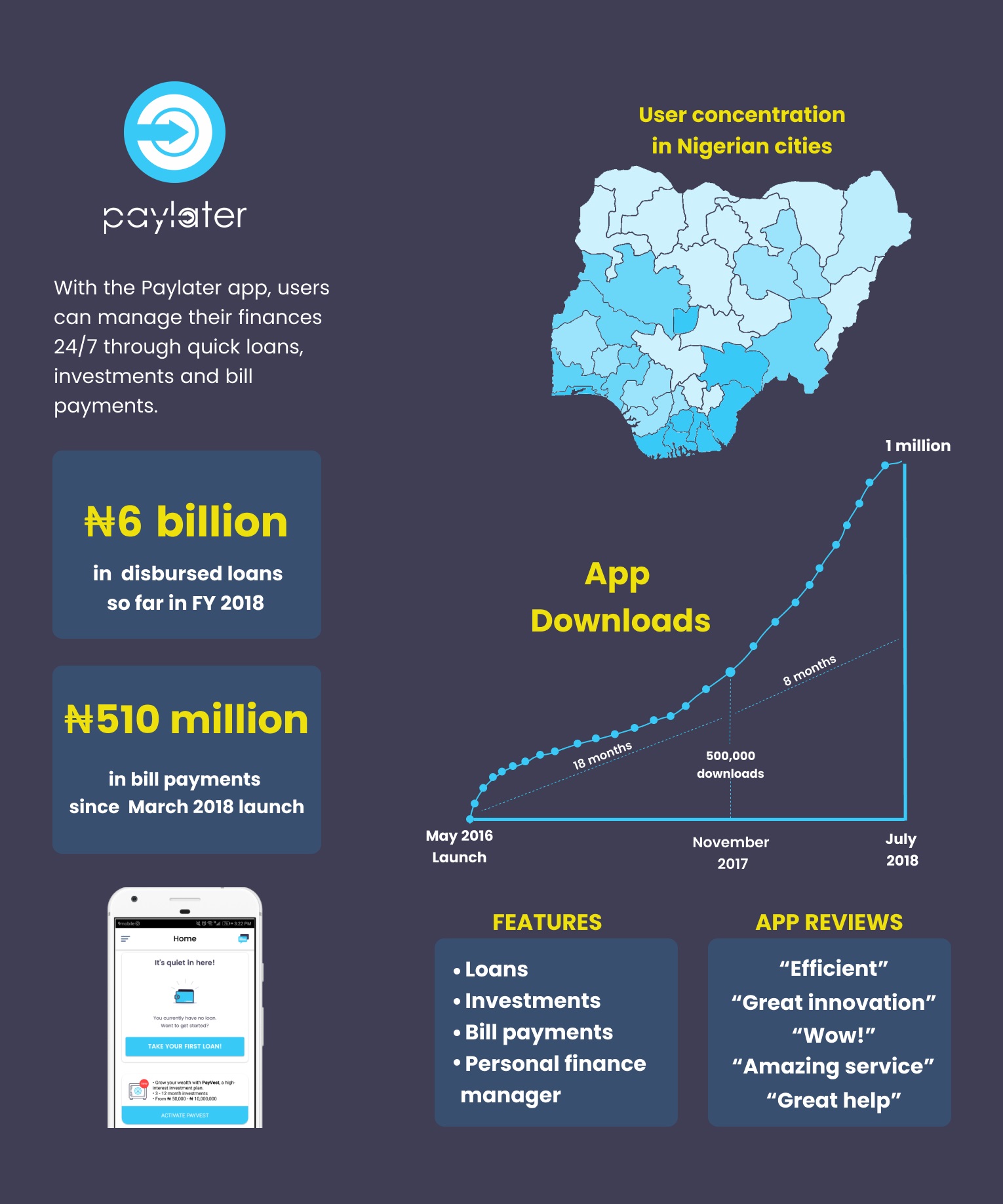 Paylater, the mobile app providing Nigerian consumers with access to credit, has reached 1 million downloads (2) (Source: Paylater | 7 years ago)