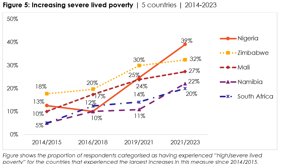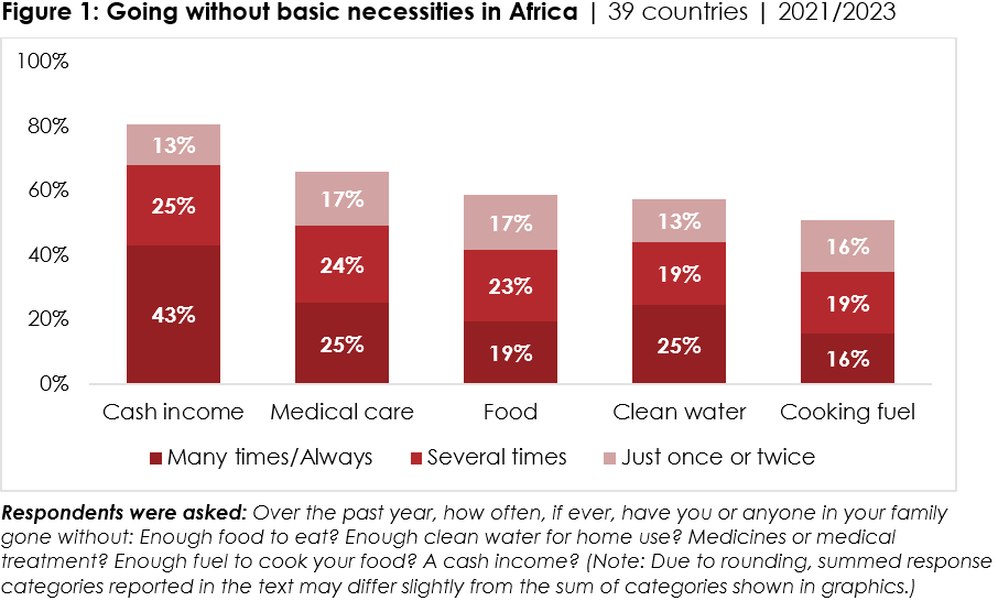 Severe lived poverty is surging in many African homes, new Afrobarometer Pan-Africa Profile shows