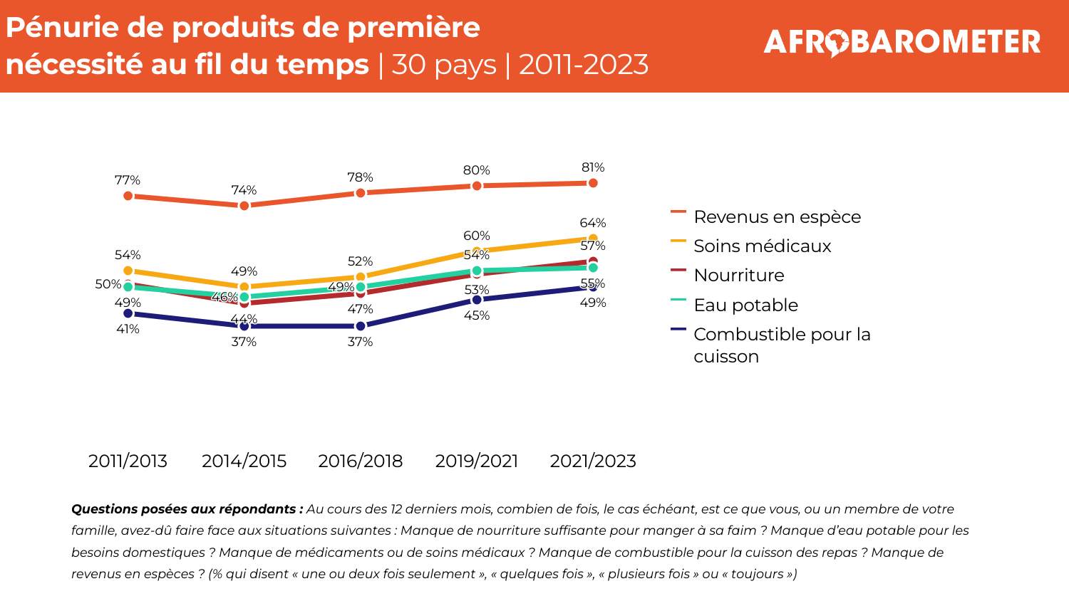 Severe lived poverty is surging in many African homes, new Afrobarometer Pan-Africa Profile shows (2) (FR) (Source: Afrobarometer | 1 year ago)