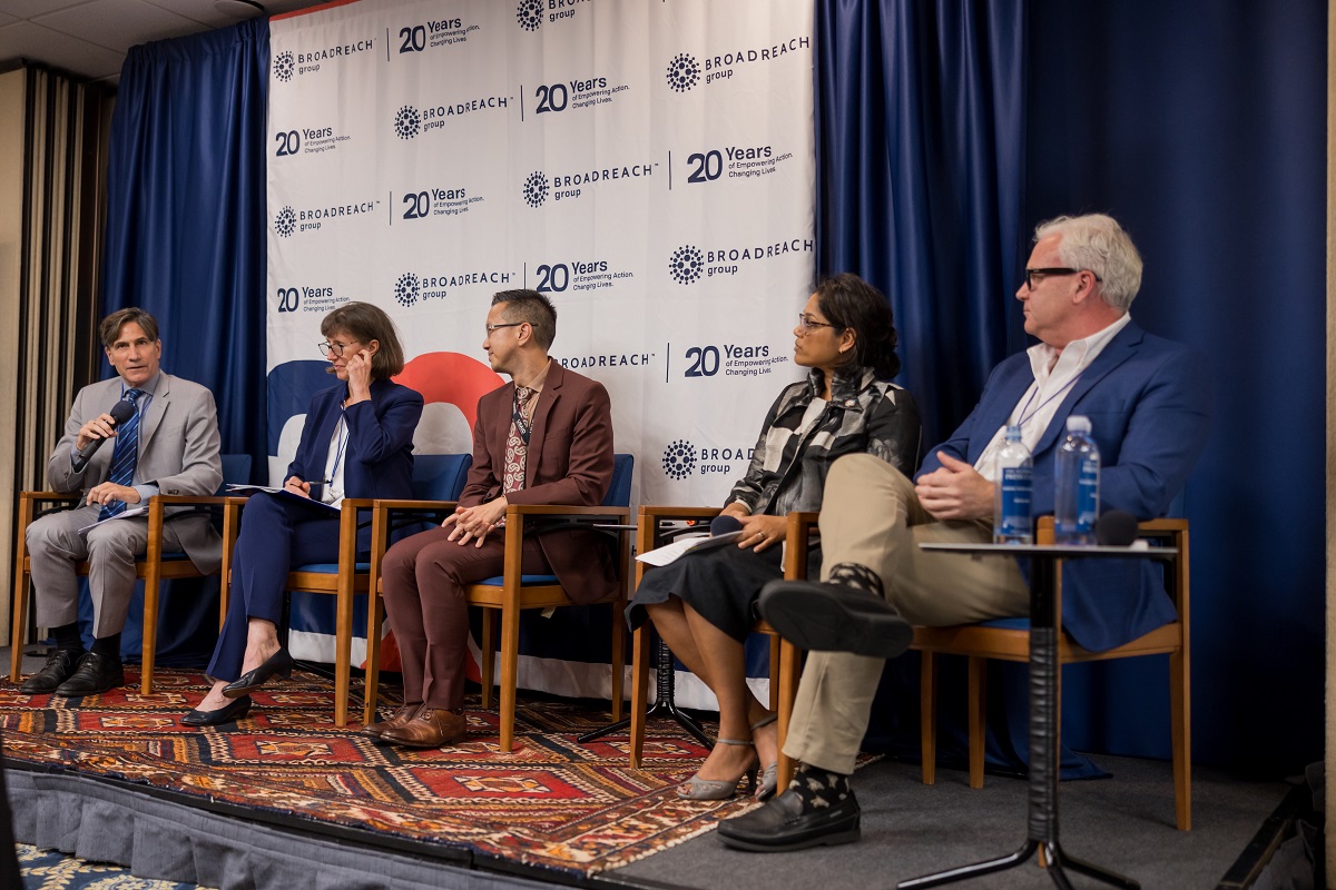 Panellists at an event hosted by the BroadReach Group in Washington, D.C. discuss the importance of PEPFAR reauthorisation. Speakers (from left - right): Chris Collins: President and CEO, Friends of the Global Fight Against AIDS, Tuberculosis and Malaria; Dr. Rebecca Bunnell: Principal Deputy Coordinator PEPFAR (acting), Global Health Security and Diplomacy Bureau, State Department; Han Kang: Acting Deputy Assistant Administrator for Global Health, USAID; Dr. Angeli Achrekar: Assistant Secretary General of the United Nations and Deputy Executive Director, Programme of UNAIDS; and Dr. Bill Weeks: Director, AI for Health, Microsoft (Source: BroadReach Group | 2 years ago)