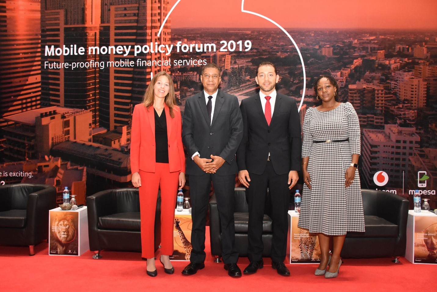 Representative from the Bank of Tanzania Abert Cesari( Second right) in group photo with Managing director of Vodacom Tanzania PLC, Hisham Hendi (Far right), Managing Executive, Legal and regulatory from Vodacom Group, Judith Obholzer (Far left) and Director of Corporate Affairs, Vodacom Tanzania Rosalynn Mworia (Second left) during release of Vodacom’s Future-Proofing Mobile Financial Services report in Dar es salaam (Source: Vodacom Tanzania Plc | 6 years ago)