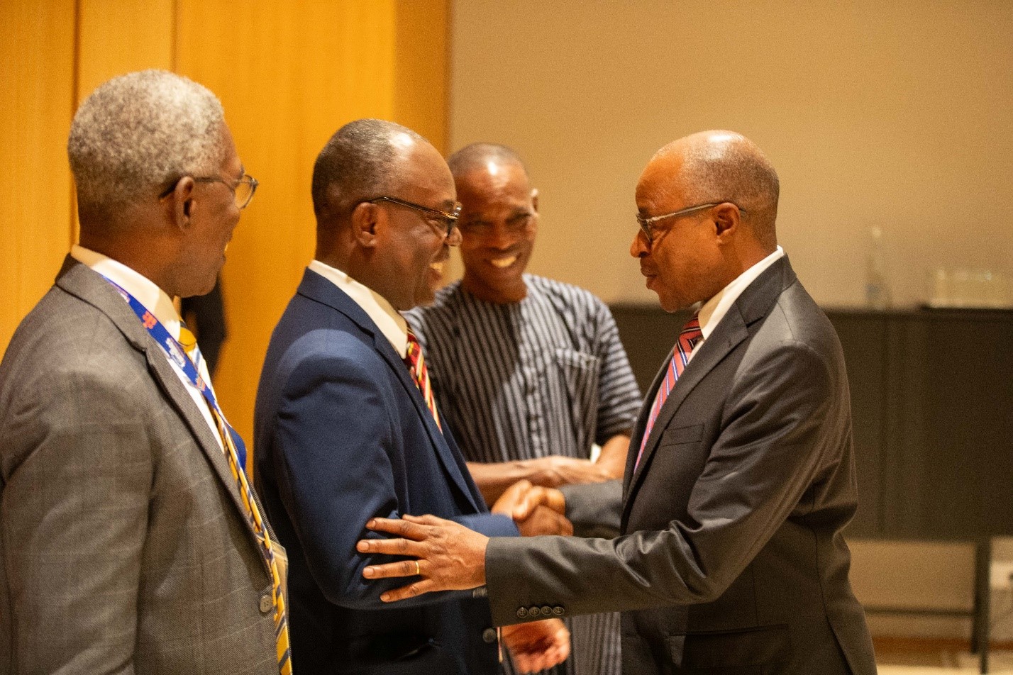 Elder Alfred Kyungu secouant Elder Tonga Jean Claude Sai avec Elder Martin D (Source: Strengthening Families Conference (SFC) | 1 year ago)