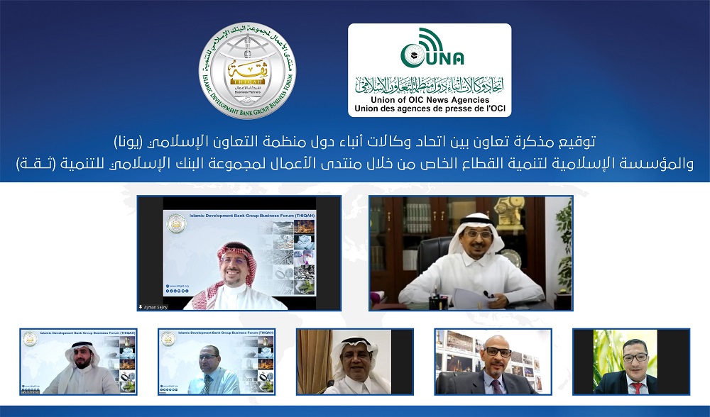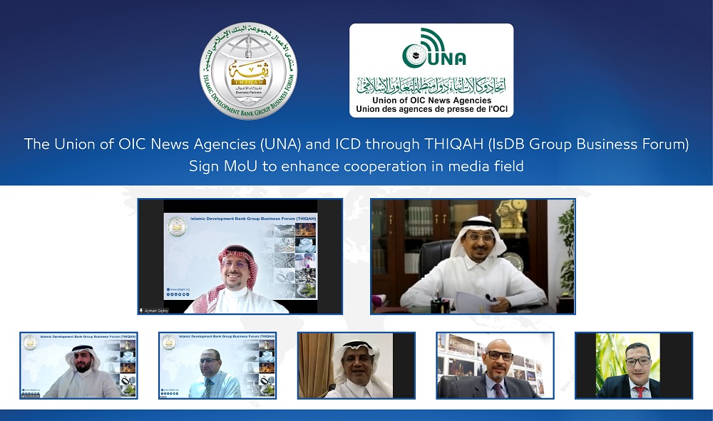 اتحاد وكالات أنباء دول منظمة التعاون الإسلامي (UNA) والمؤسسة الإسلامية لتنمية القطاع الخاص (ICD) من خلال منتدى الأعمال لمجموعة البنك الإسلامي للتنمية "ثقة" يوقعان مذكرة تعاون في مجال الإعلام