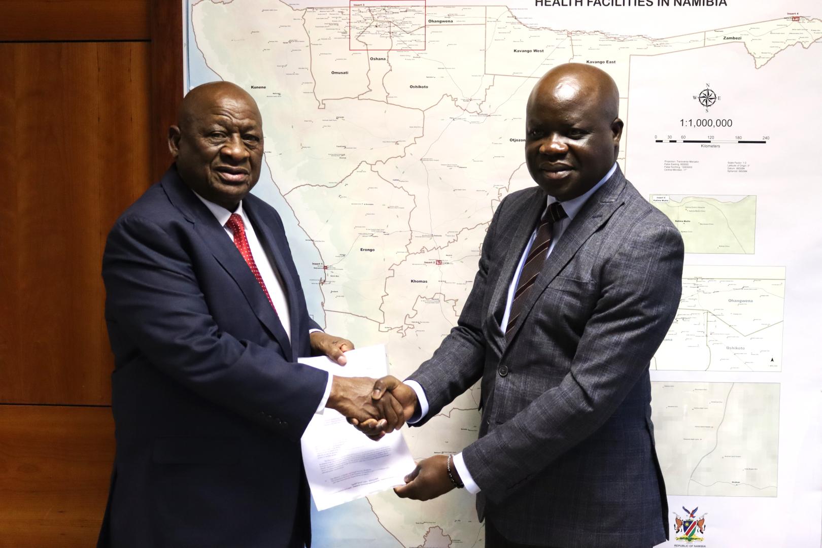 Hon. Dr Kalumbi Shangula, Minister of Health and Social Services and Dr Richard Banda WHO Representative to Namibia (Source: World Health Organization (WHO) - Namibia | 1 year ago)