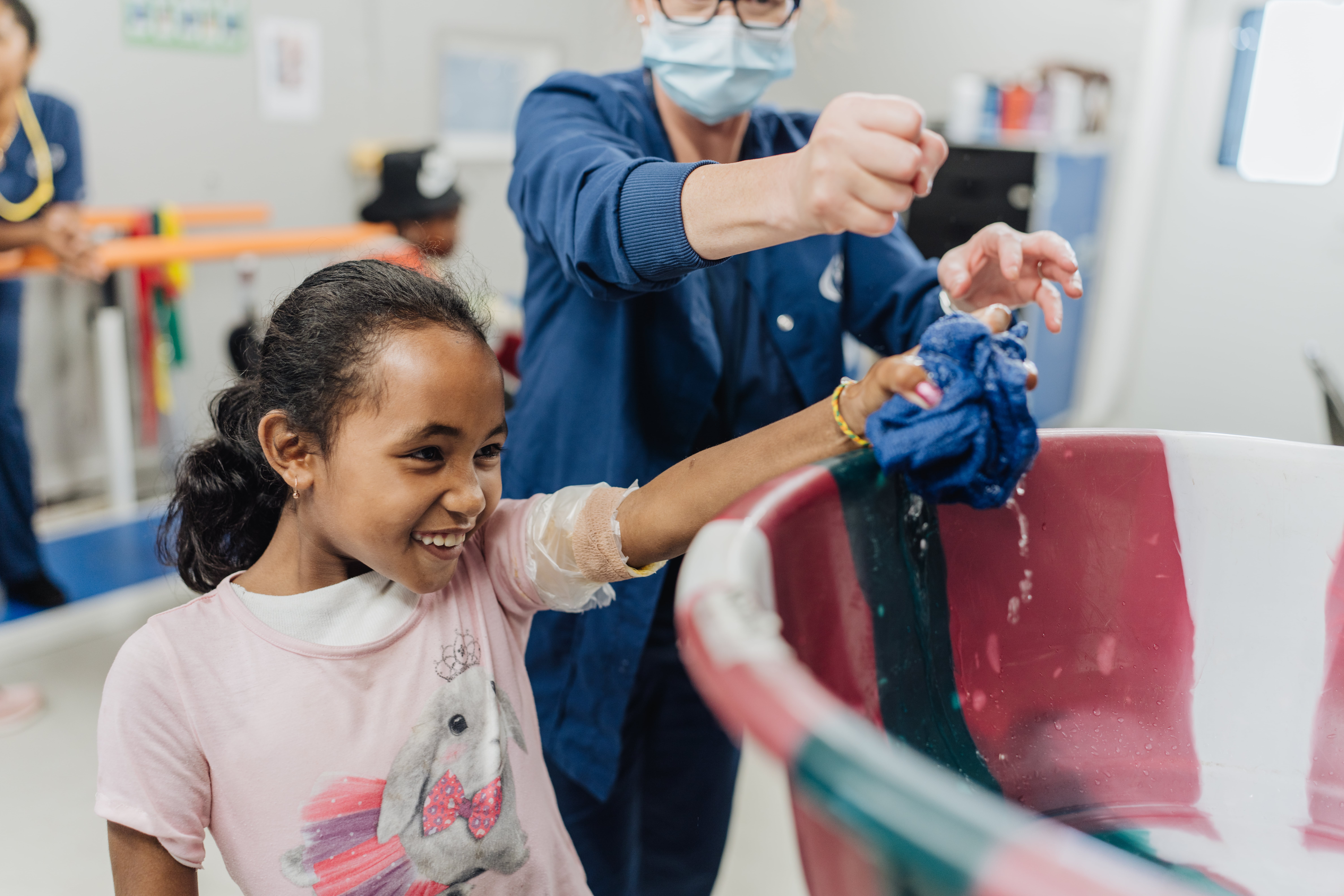 Grâce à une organisation humanitaire, une jeune fille bénéficie d'une chirurgie qui lui permet de retrouver sa mobilité après de graves brûlures