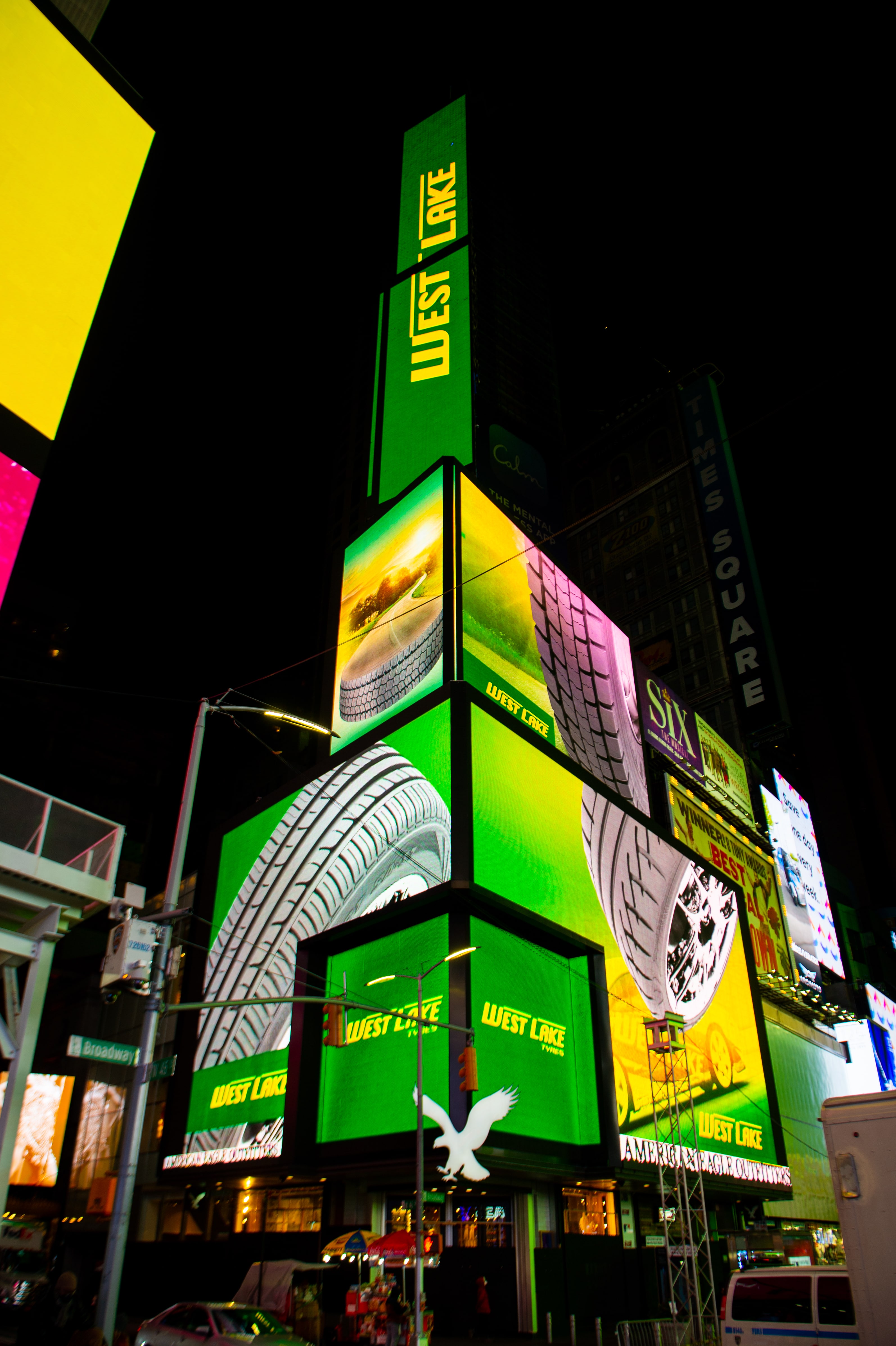 La marque de pneus WESTLAKE de ZC Rubber est projetée sur l'écran géant d'American Eagle à New York (Source: ZC Rubber | 5 years ago)
