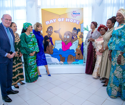 • O presidente e CEO da Fundação Merck, juntamente com primeiras-damas africanas, lançaram o livro de histórias infantis "Raio de Esperança" para a conscientização sobre o câncer, em três idiomas (1)