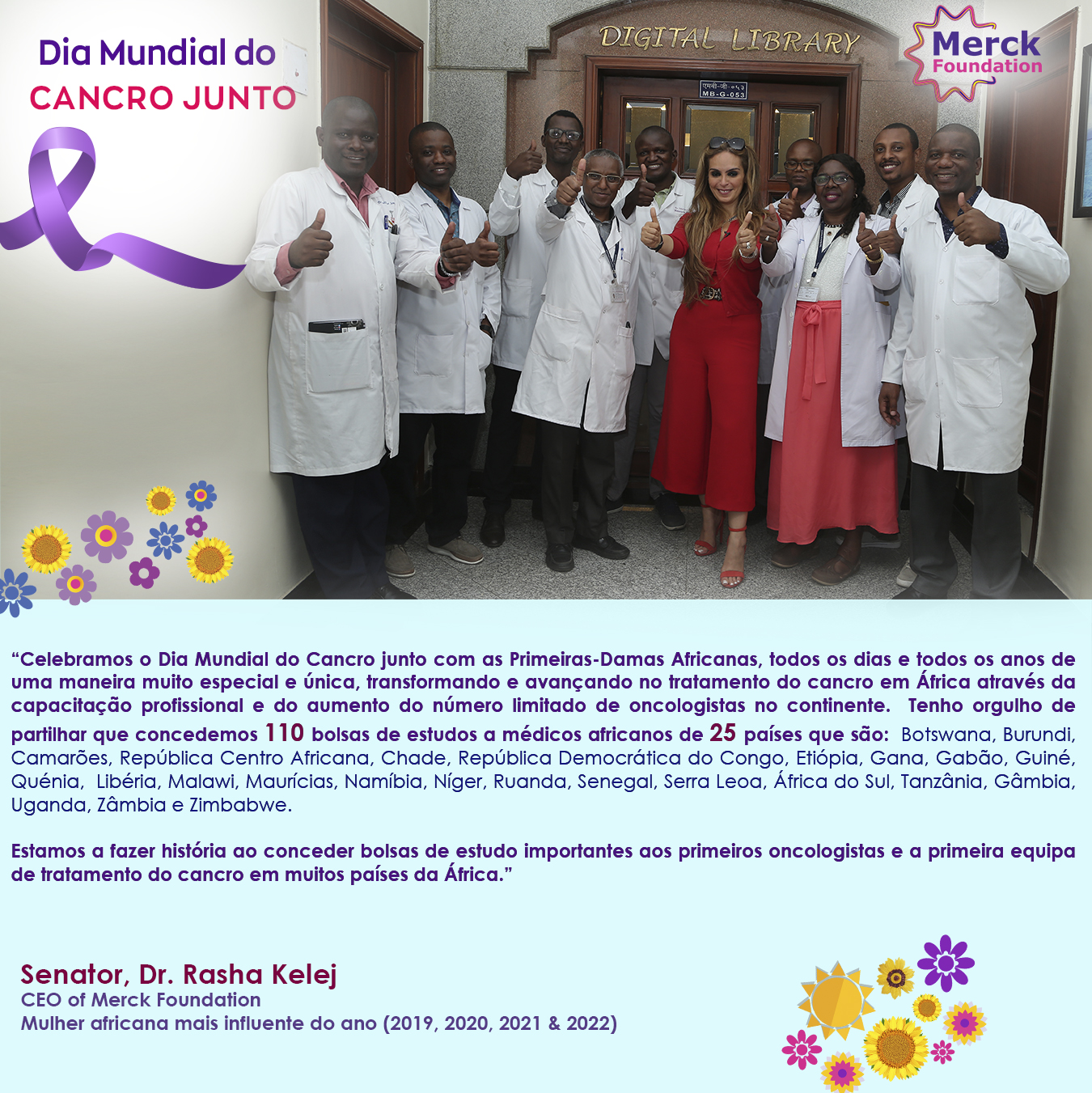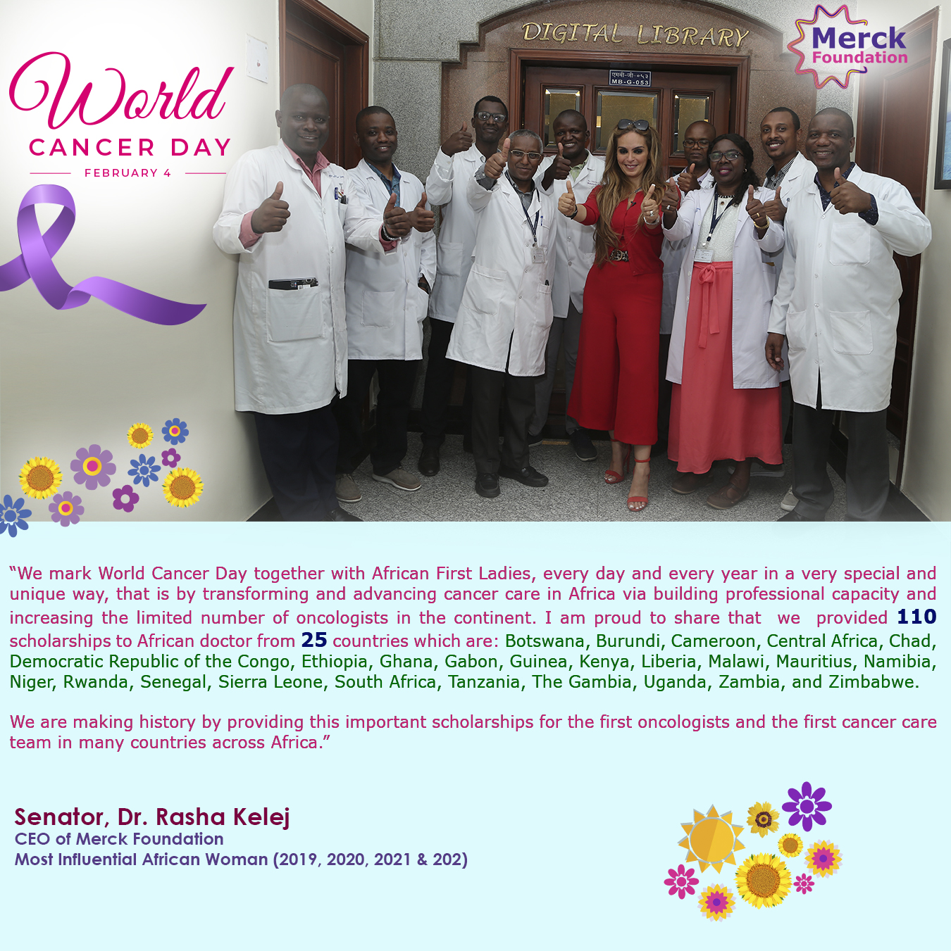 Like every year, Merck Foundation (www.Merck-Foundation.com) marks World Cancer Day together with Africa First Ladies and Ministries of Health through building cancer care capacity and increasing the limited number of oncologists in their countries by providing 110 Scholarships of One-, two- and three-years fellowship, diploma and Master degree of oncology to African doctors from 25 Countries; Merck Foundation is making history in Africa by training the first African oncologists and first cancer care teams in countries such as The Gambia, Sierra Leone, Burundi, Liberia, Guinea Conakry, Central African Republic, Chad, Burundi, Malawi, Niger, Namibia, Zambia, Zimbabwe and more.