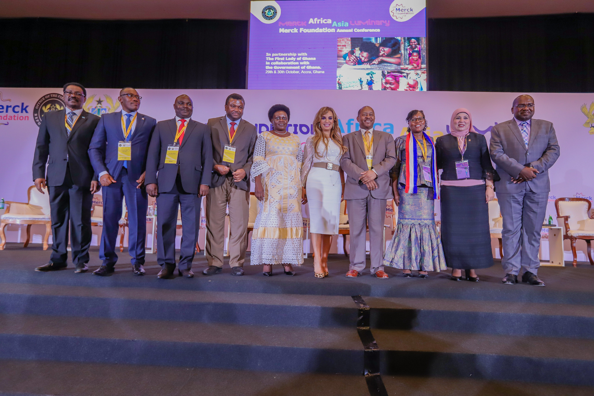 • Hon. Dr. Thadée NDIKUMANA Minister of Public Health and Fighting against AIDS, Republic of Burundi, Hon. Jappie Chancy Mtuwa Mhango Minister of Health and Population, Republic of Malawi, Hon. Prof. Mahamoud Youssouf KHAYAL Minister of Public Health, Republic of Chad, , Hon. Dr. Hon. Dr. Ahmadou Samateh Minister of Health, Republic of The Gambia, Hon. Sarah Opendi Minister of State for Mineral Development (Former Health Minister), Republic of Uganda, Dr. Rasha Kelej CEO of Merck Foundation Co-Chairperson of Merck Africa Asia Luminary, Hon. Dr. Obadiah Moyo Minister of Health and Child Care, Republic of Zimbabwe, Hon. Dr. Wilhemina S. Jallah Minister of Health, Republic of Liberia, Dr. Rasha Kamal Head of the Central Administration for International Students Affairs, Ministry of Higher Education and Scientific Research, Arab Republic of Egypt, Hon. Dr. Chitalu Chilufya Minister of Health, Republic of Zambia during a High level Ministerial Panel at 6th Edition of Merck Africa Asia Luminary 2019 in Accra, Ghana